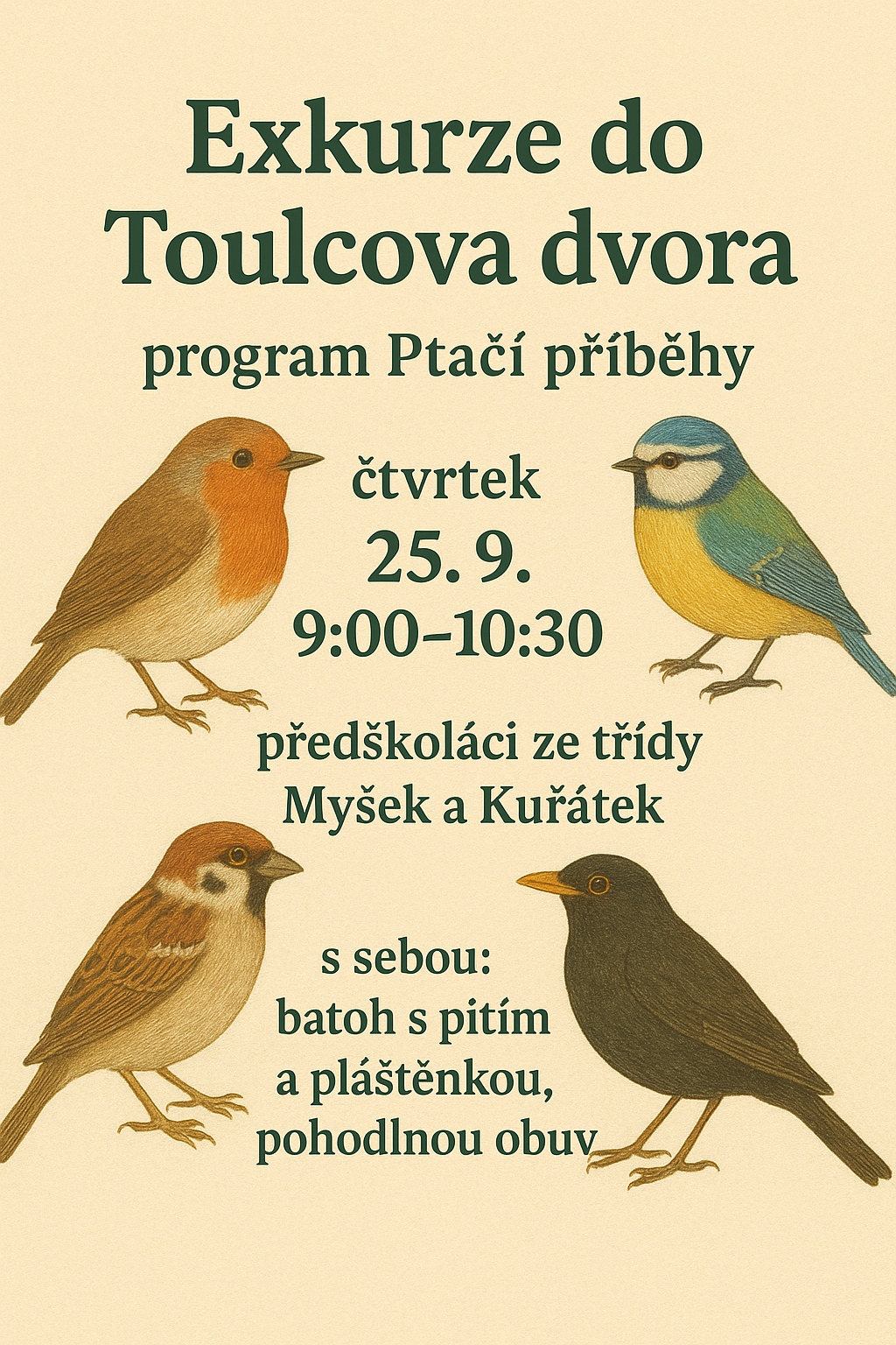 Exkurze do Toulcova dvora - Ptačí příběhy - předškolní děti ze třídy Myšek a Kuřátek