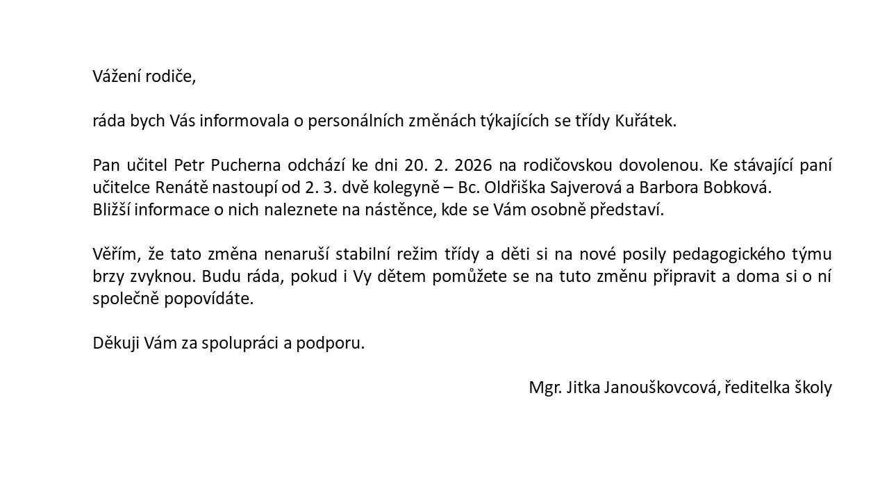 Personální změny ve třídě Kuřátek